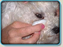 Clean eyes and whiskers daily with cotton swabs soaked in boric water.