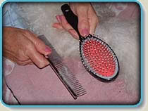 -Combing is most important before bathing. Start with combing the deeper fur, then the top layers. For this operation a soft metal brush can be very useful.